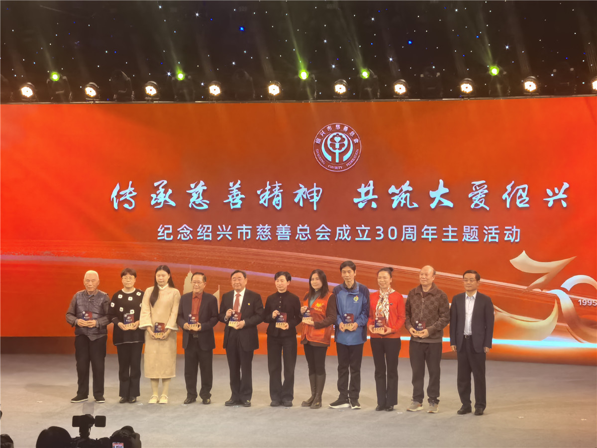 绍兴市慈善总会成立30周年慶典,在绍兴市电视台演播厅隆重举行,浙江省十八届政协副主席、浙江省慈善总会会长裘东耀、绍兴市委书记施惠芳、绍兴市委副书记、绍兴市市长吴登芬、绍兴市副市长罗延发、绍兴市人大主任谭志桂、绍兴市政协主席张新宇、绍兴市政协副主席、市委秘书长马国灿、绍兴市第八届人大副主任、市慈善总会会长胡水君、老领导袁长寿等市委市政府相关领导莅临出席,欢乐慈爱义工团团长、理事长裘宇飞,秘书长刘丽佳,秘书徐樱桃,办公室主任朱迎春,项目部部长严彬,以及优秀志愿者代表一行应邀参加,欢乐慈爱工团荣获绍兴市优秀志愿服务组织奖,秘书长刘丽佳代表欢乐慈爱义工团,领取了沉甸甸的奖杯!