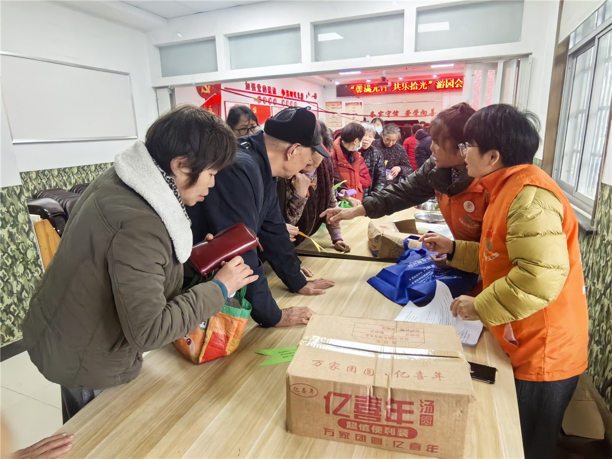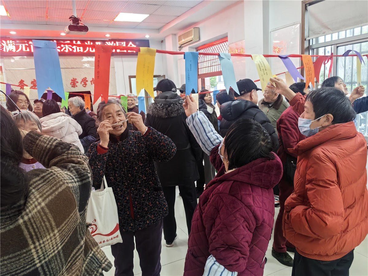 现场上百条趣味灯谜悬挂,涵盖传统文化、生活常识、科普知识等内容。只要猜对谜底,即可现场兑换精美可口汤团一份!以妙趣横生的灯谜、贴心实用的便民服务,使参与长者们非常开心!现场笑声彼起,热闹非凡!