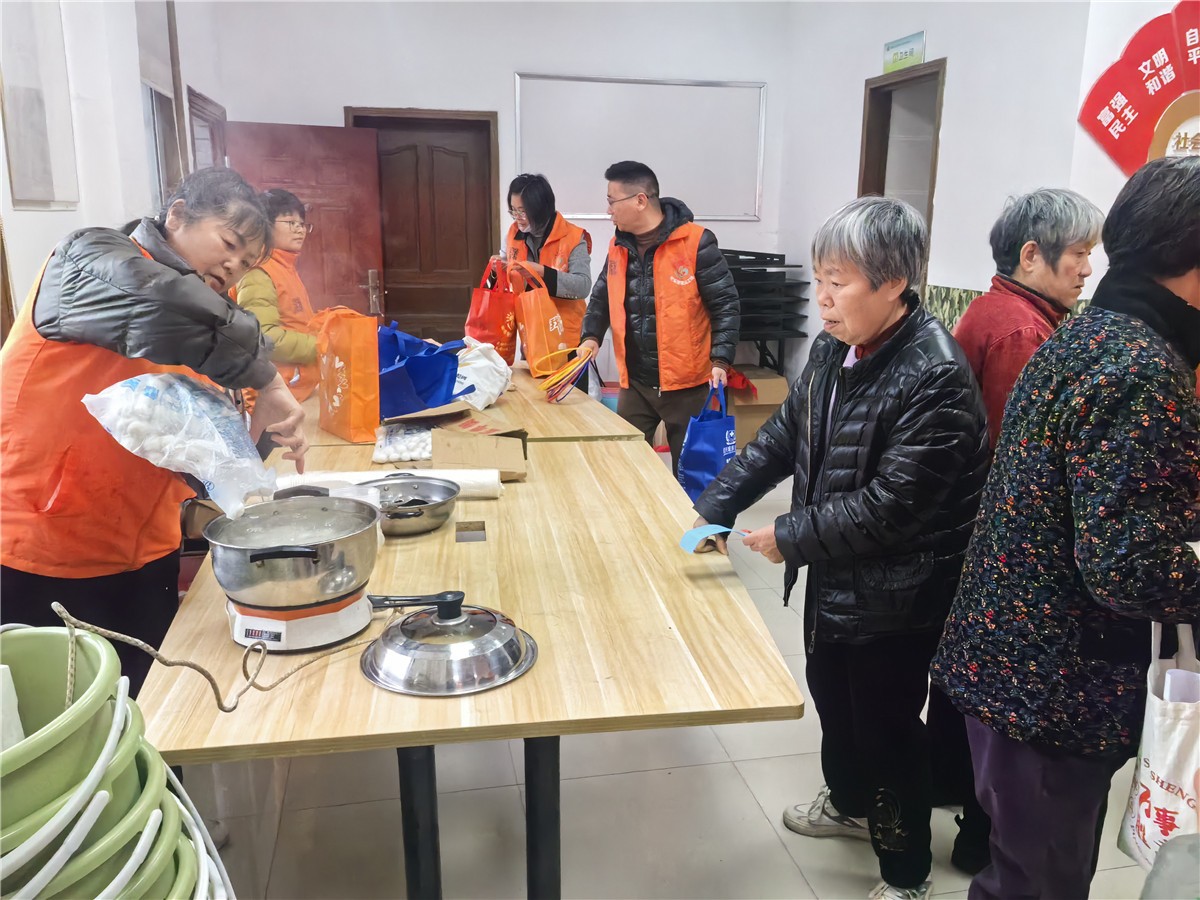 在活动现场电锅烧起,现煮现分热气腾腾、香甜软糯的汤圆。大家围坐立各自,笑声四起,吃一碗暖心汤圆,话一段柔情家常,祈愿新的一年生活甜甜蜜蜜、家国团团圆圆。