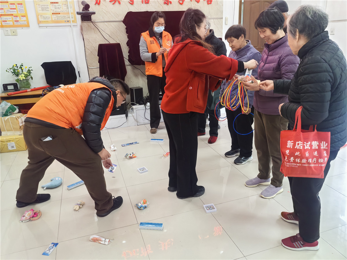现场设置套圈游戏区,地上摆满了生活用品、儿童玩具,供其套圈玩乐,每人都有多次露一手之机会,揎长者手起圈落,套中的惊喜直接带回家!