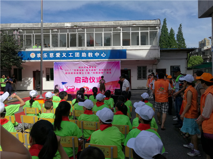 由绍兴市慈善总会主办,欢乐慈爱义工团承办的《向阳启梦》项目,为新市民子女学生专门设立的“欢乐义工爱心学堂”开学典礼,在市民政局、市慈善办领导、市电视台、绍兴日报、绍兴晚报、浙江日报记者站、绍兴E网、今日头条等多方媒体的关怀支持下,在市区昌安鞋子畈(原蕺山街道办事大院内)隆重举行!