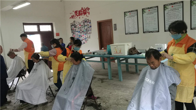 为已经等侯在该村村委的几十位老人们提供了下村理发、养生保健、测血压、摄像等爱心服务!
