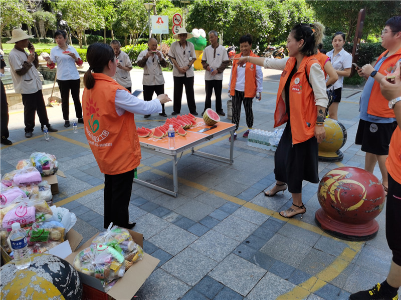 欢乐慈爱义工团的义工们,不顾高温骄阳,继而为美化新城社村居民区域的那些个清扫员们,又送去了夏日的清凉,送去了慰问物品和社会对她们的一片关爱与温暖之情!