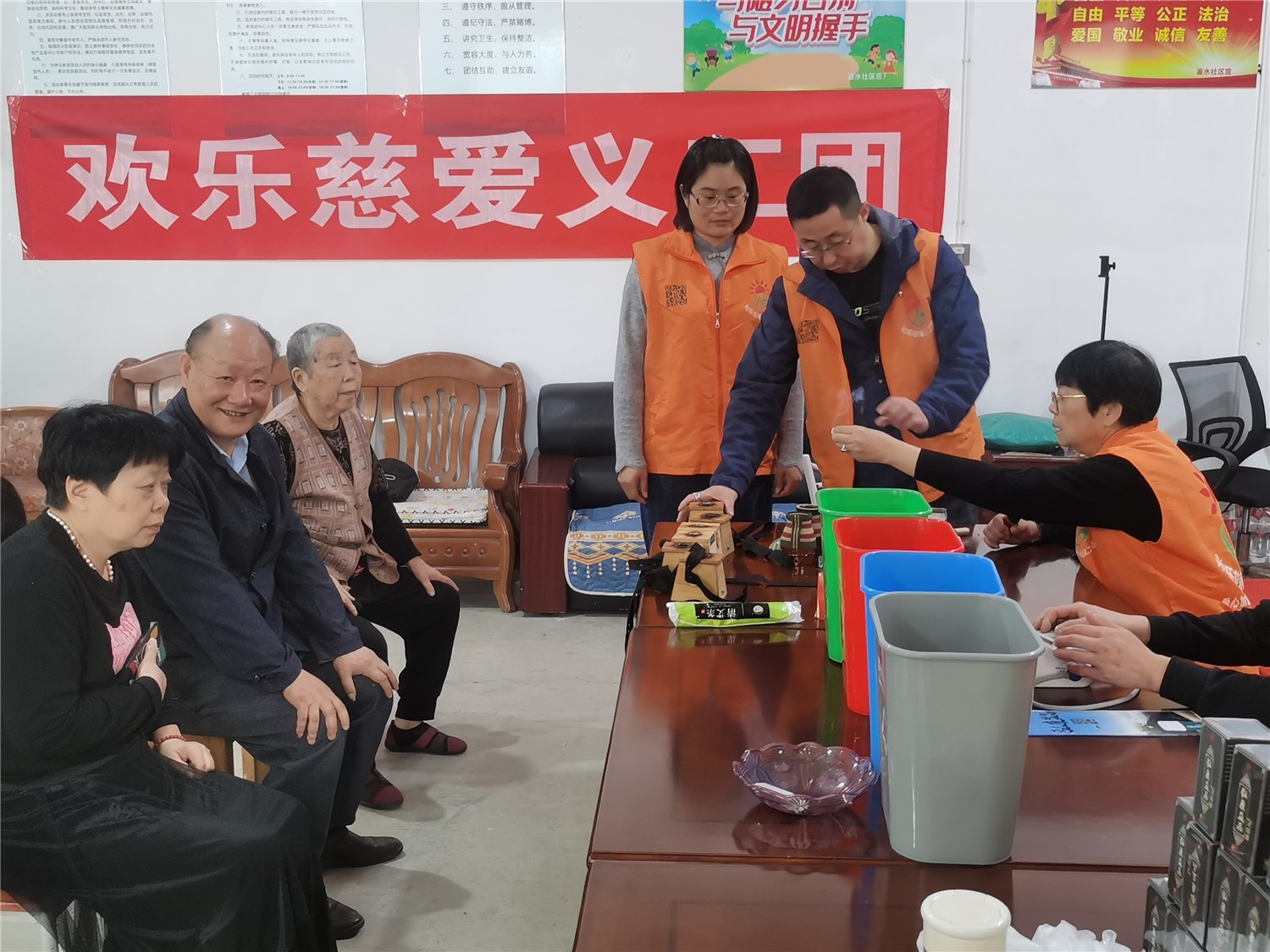 在人杰地灵、景色秀丽的古越柯城鉴水人家老年活动地与往日非比寻常,欢乐慈爱义工团的义工代表们,又抽出时间相聚一起忙碌于奉献爱心之中!