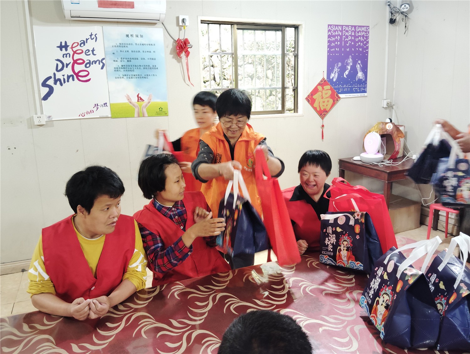 欢乐慈爱义工团的义工们没有忘记身处山村庇护中心的那些特殊孩子们,风雨挡不住他们爱的脚步,庚子之日时值端午佳节来临之时,特意带上节日礼品,再次走进柯桥南部山区嵇东镇久拥庇护中心,和中心的特殊孩子们一起取乐欢舞,欣心交融,现场是那么的一片真情流露!显得是那么亲密无间!