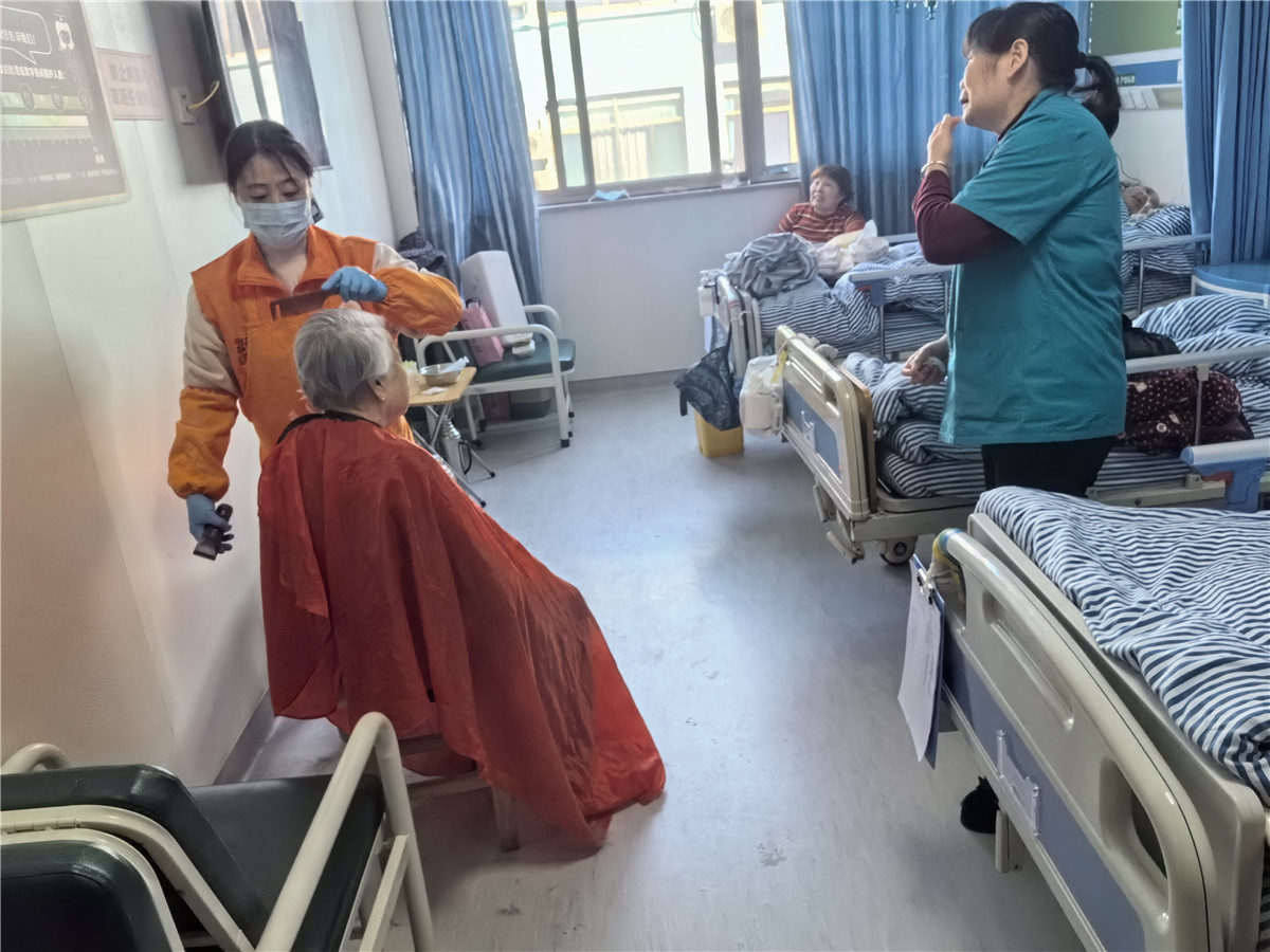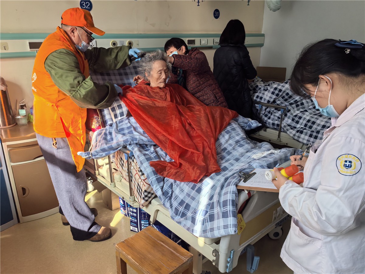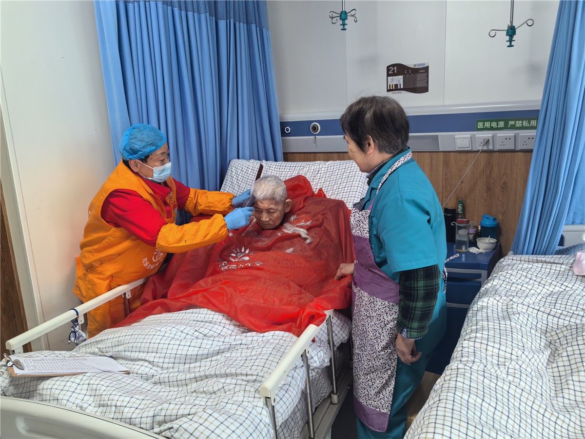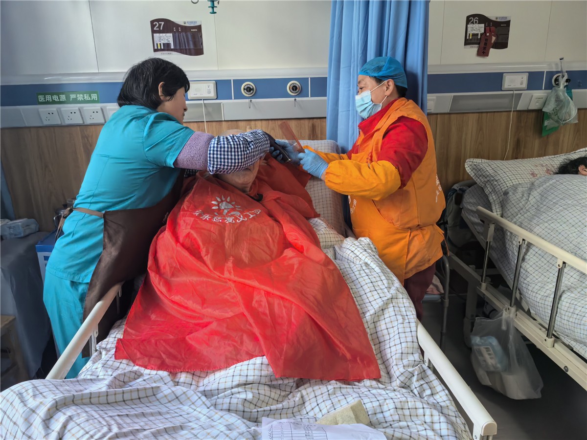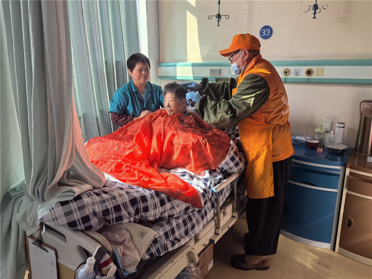 欢乐慈爱义工团的义工们,在党员义工的带领下,一直努力践行“帮助别人~快乐自己~不图回报~爱心奉献”的服务宗旨!又一次来到了城东医院,针对住院的这些个重病在身、行动困难、难能解决适时理发的病人,履行了“银龄义剪”爱心行动,为近百名卧床不起行动困难的老人患者,提供了爱心理发服务!