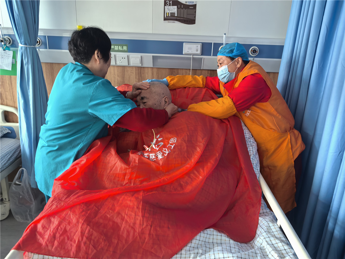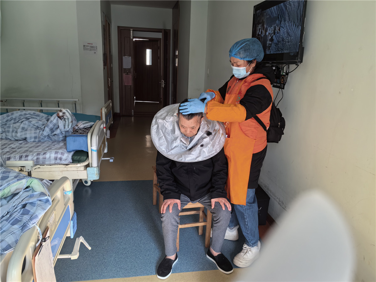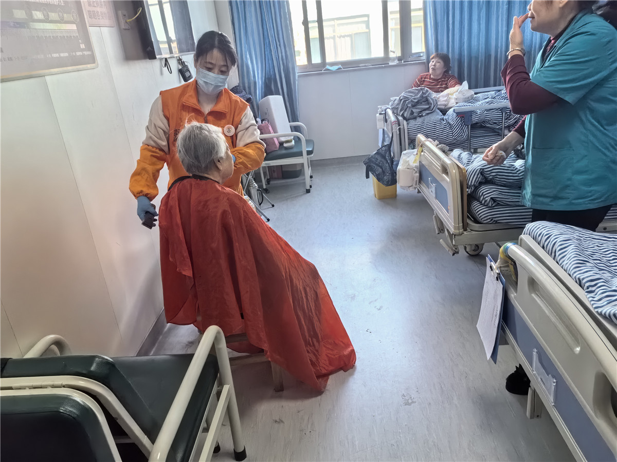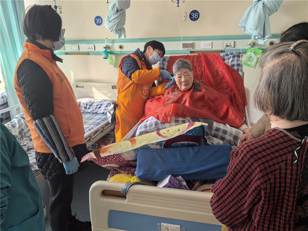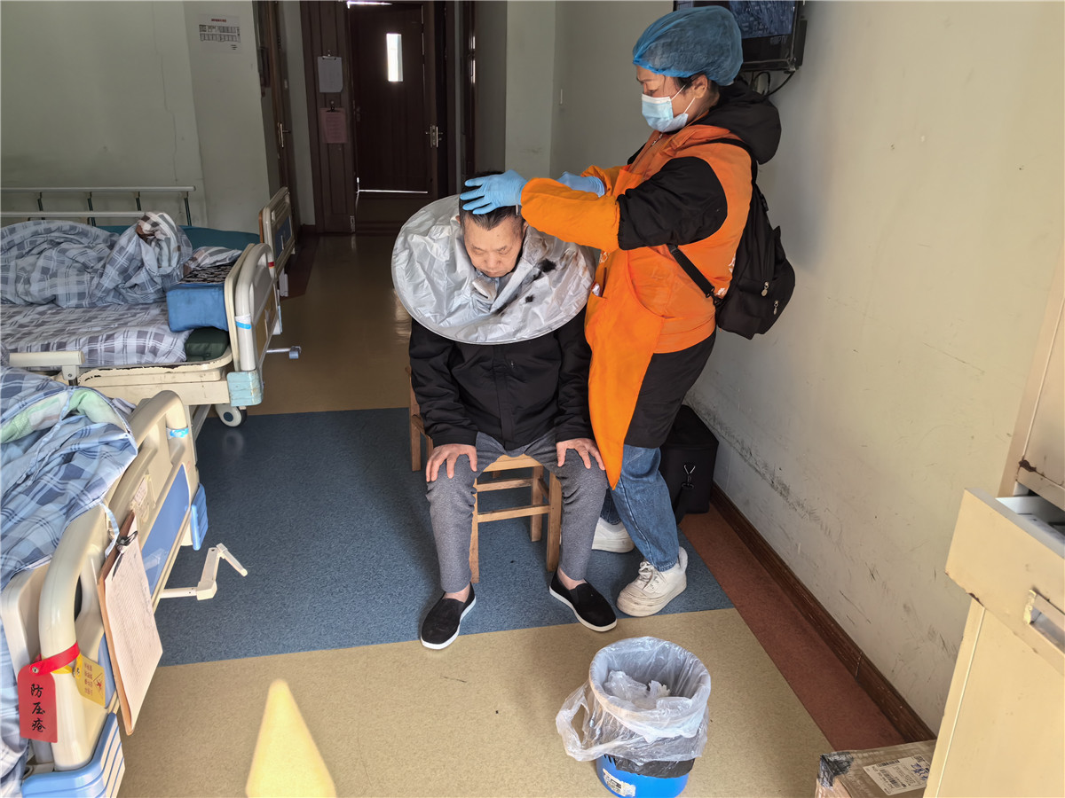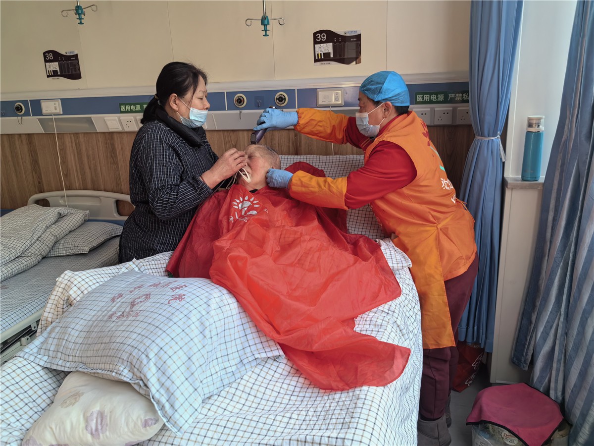 欢乐慈爱义工团的义工们,在党员义工的带领下,一直努力践行“帮助别人~快乐自己~不图回报~爱心奉献”的服务宗旨!又一次来到了城东医院,针对住院的这些个重病在身、行动困难、难能解决适时理发的病人,履行了“银龄义剪”爱心行动,为近百名卧床不起行动困难的老人患者,提供了爱心理发服务!
