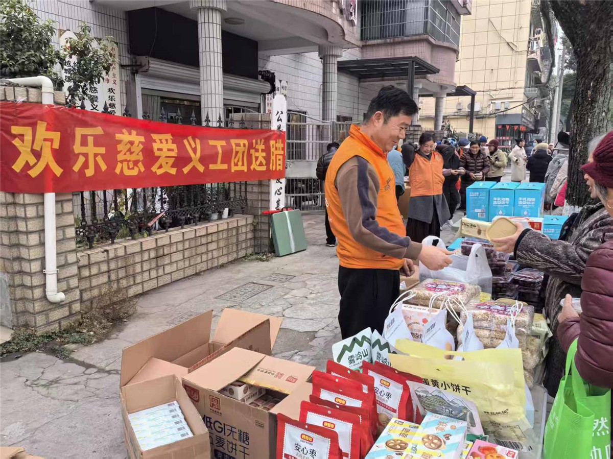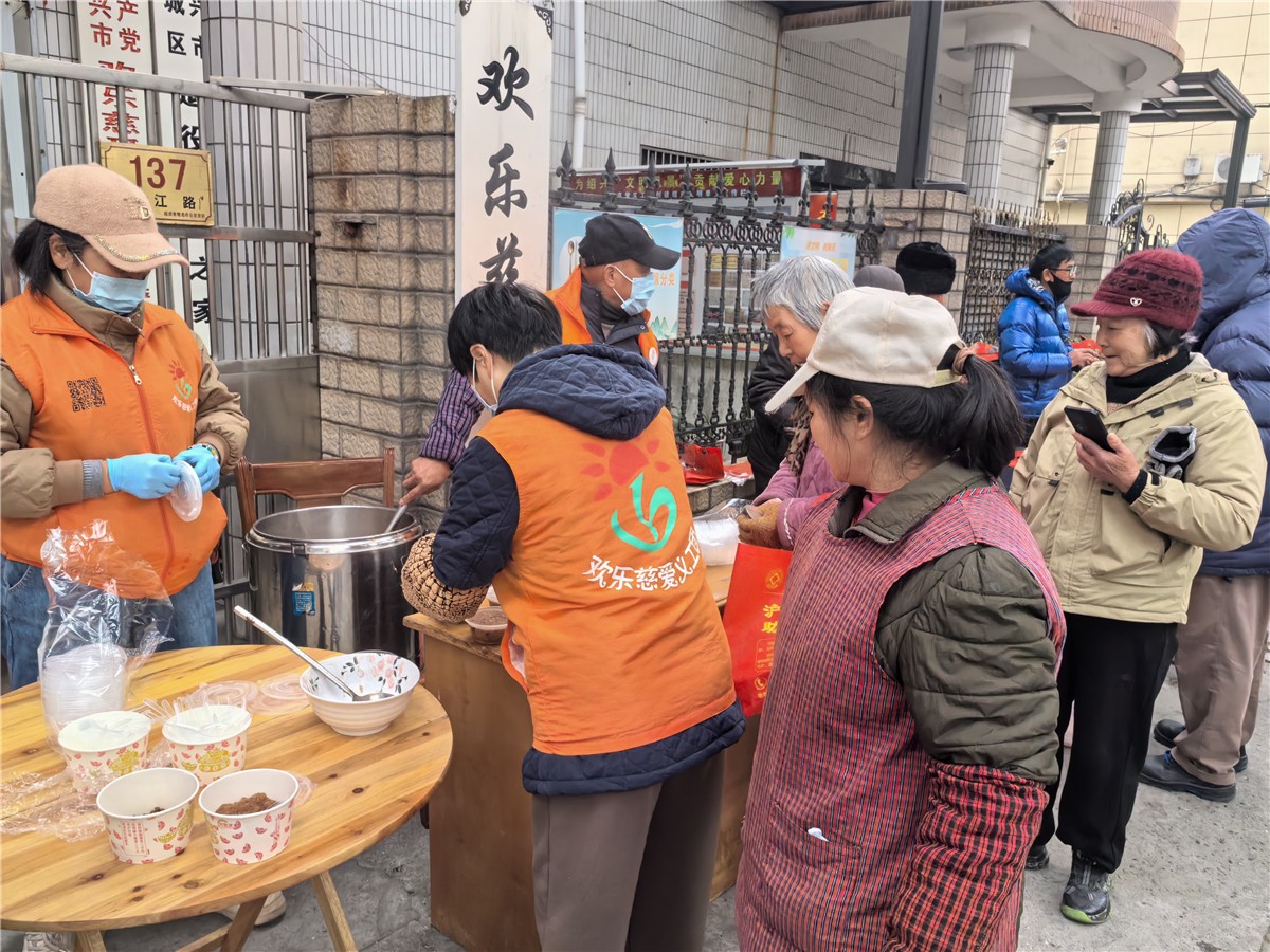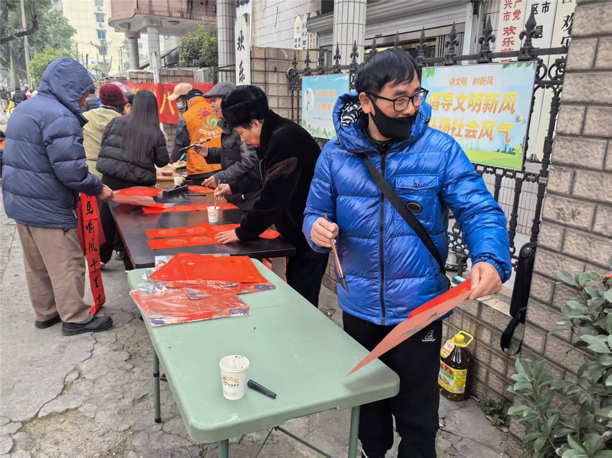 欢乐慈爱义工团呼应联动中国志愿浙江,分别在市区和柯桥区稽东,分别发放腊八粥和书写春联的站点。