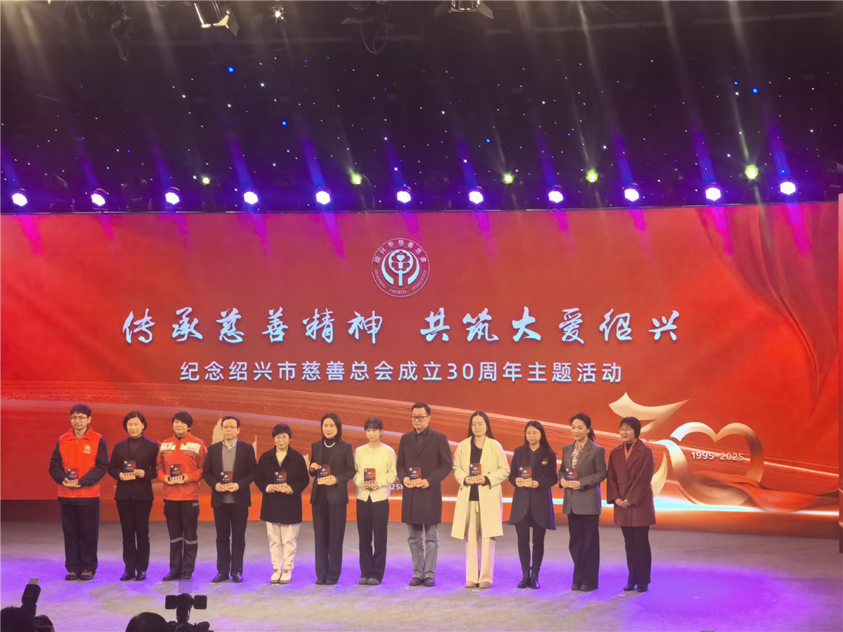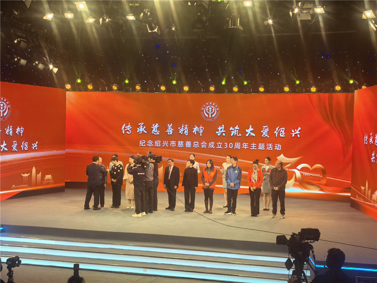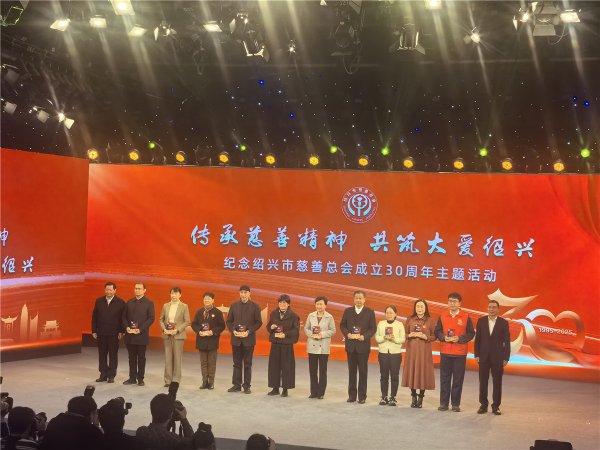 绍兴市慈善总会成立30周年慶典,在绍兴市电视台演播厅隆重举行,浙江省十八届政协副主席、浙江省慈善总会会长裘东耀、绍兴市委书记施惠芳、绍兴市委副书记、绍兴市市长吴登芬、绍兴市副市长罗延发、绍兴市人大主任谭志桂、绍兴市政协主席张新宇、绍兴市政协副主席、市委秘书长马国灿、绍兴市第八届人大副主任、市慈善总会会长胡水君、老领导袁长寿等市委市政府相关领导莅临出席,欢乐慈爱义工团团长、理事长裘宇飞,秘书长刘丽佳,秘书徐樱桃,办公室主任朱迎春,项目部部长严彬,以及优秀志愿者代表一行应邀参加,欢乐慈爱工团荣获绍兴市优秀志愿服务组织奖,秘书长刘丽佳代表欢乐慈爱义工团,领取了沉甸甸的奖杯!