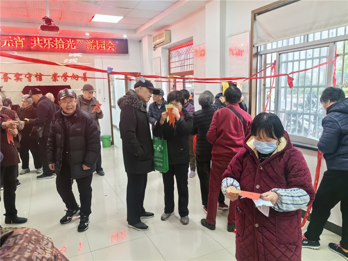 现场上百条趣味灯谜悬挂,涵盖传统文化、生活常识、科普知识等内容。只要猜对谜底,即可现场兑换精美可口汤团一份!以妙趣横生的灯谜、贴心实用的便民服务,使参与长者们非常开心!现场笑声彼起,热闹非凡!